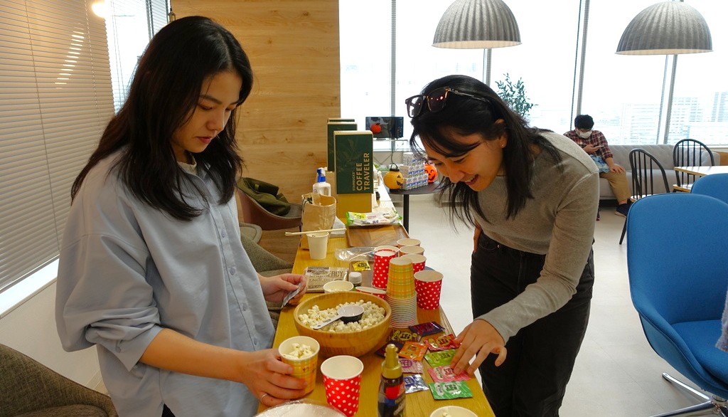 先日、クラフのカフェテリアスペースにてクラフカフェを開催しました。今回は「ポップコーンパーティー」をテーマに、数種類の味のポップコーンが並びました。