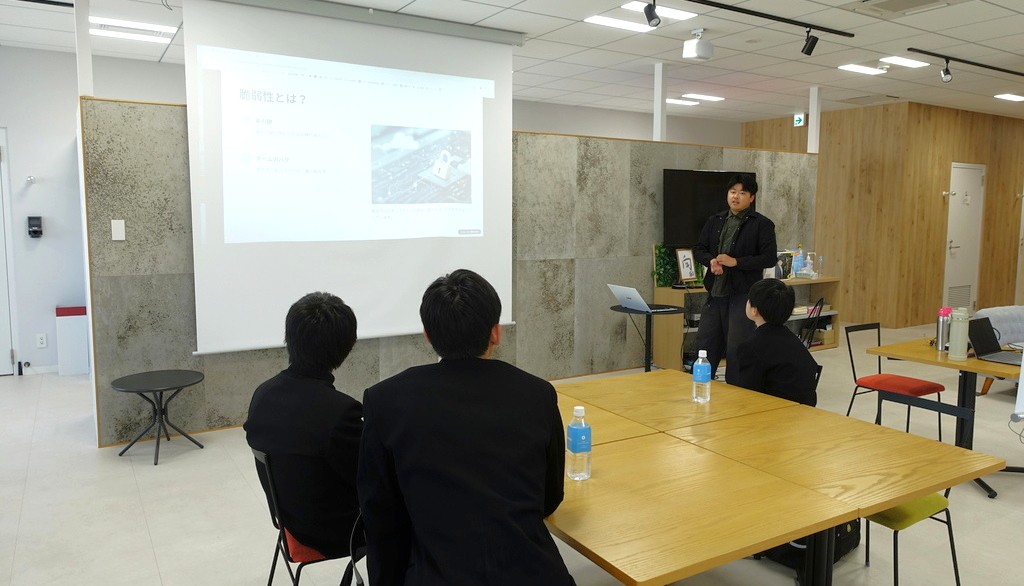 先日、宮崎市立赤江中学校から4名の生徒が職場体験のため来社されました。会社紹介やオフィスツアーに始まり、IT業界やセキュリティについて学ぶプログラム。